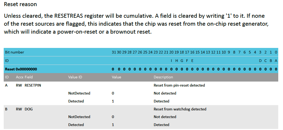 | Nordic Semiconductor | NRF52 | RESETREAS |