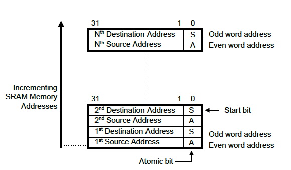 Bit 1 in the “destination address”, referred to as the “S-bit”, is set when the packet is the first one captured after a trace has been started. If the MTB has been stopped and started multiple times, this would reveal when there are gaps in the trace information.